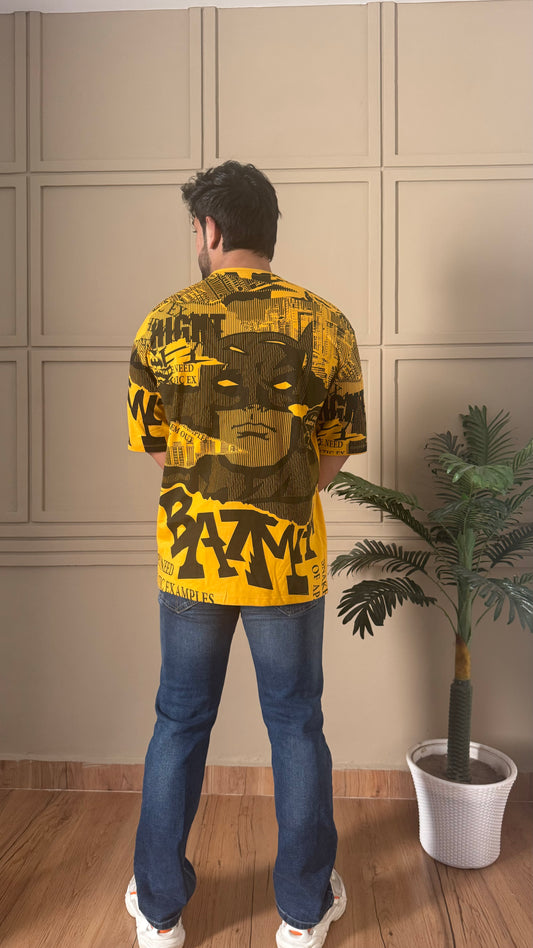 Men Oversized Round Neck Drop Shoulder Printed Cotton Lycra T-Shirt