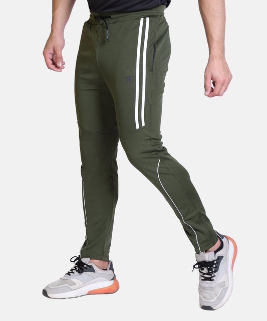 Mens Solid Olive Cotton Lycra Joggers
