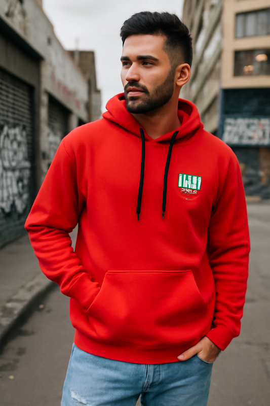 Red Color Back Printed Hooded 2 Thread Cotton Fleece Sweatshirt For Men