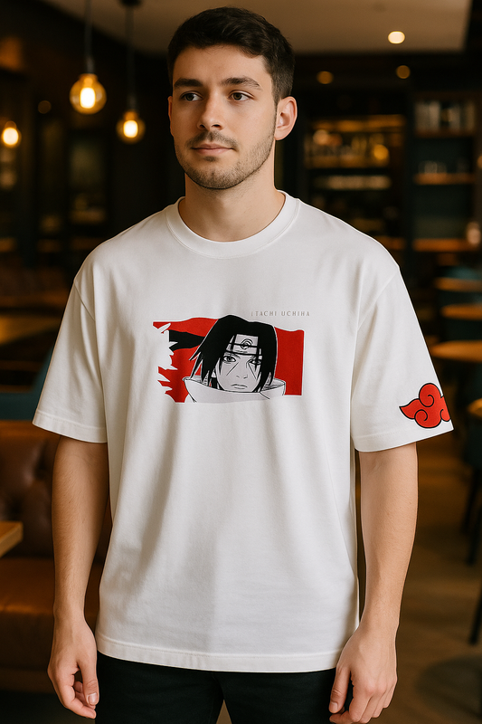 Itachi Uchiha Akatsuki Naruto T-Shirt | Anime Graphic Tee for Men & Women | White Cotton Oversized Streetwear