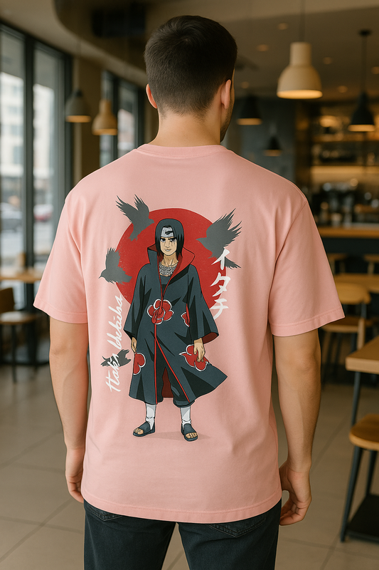 Itachi Uchiha Akatsuki Naruto T-Shirt | Anime Graphic Tee for Men & Women | Pink Cotton Oversized Streetwear