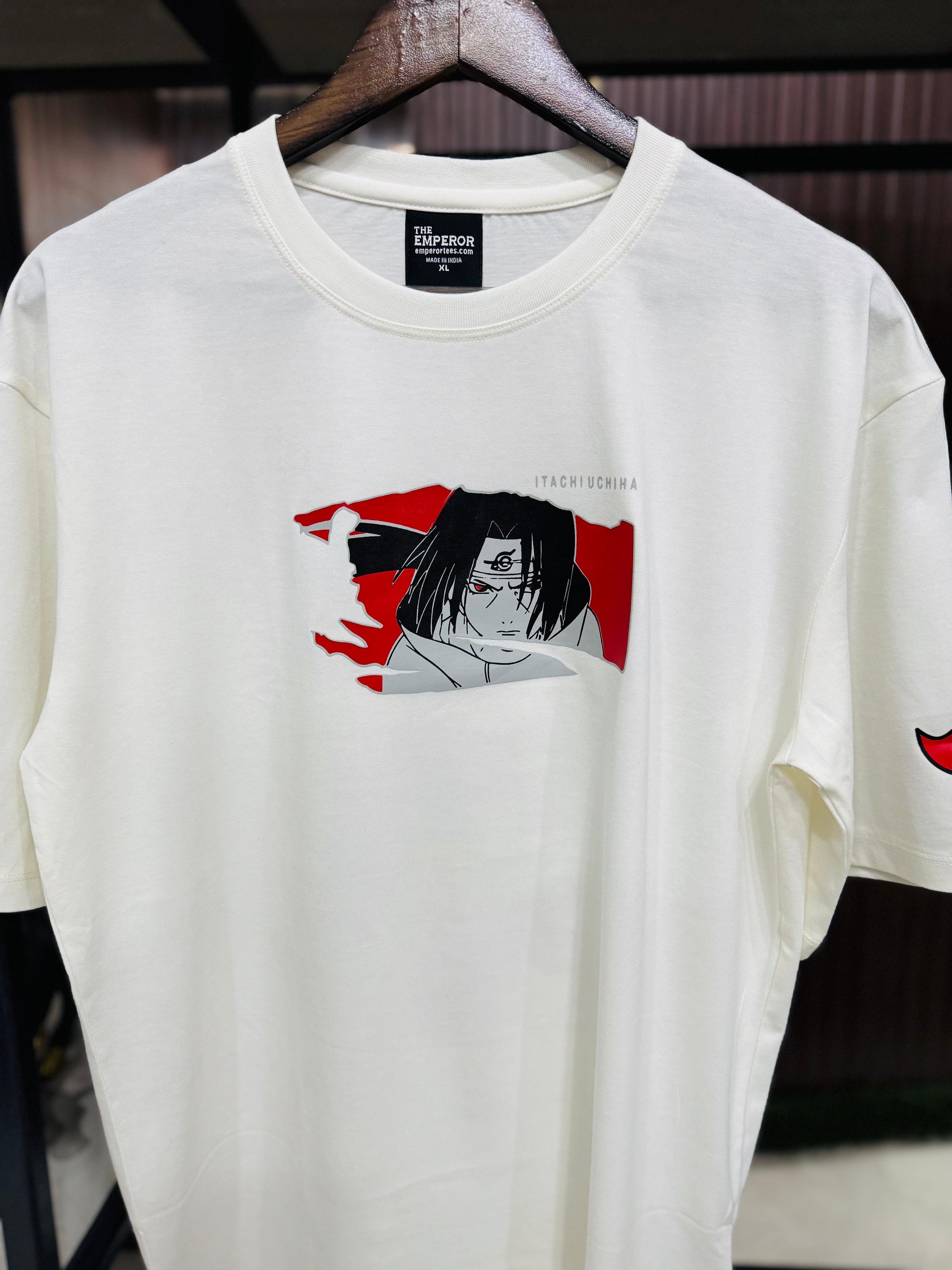 Itachi Uchiha Akatsuki Naruto T-Shirt | Anime Graphic Tee for Men & Women | White Cotton Oversized Streetwear
